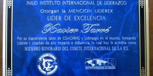 Aquest dimecres 18 de setembre de 2013, l’International Coaching Leadership (ICL) i l’Instituto Nacional de Liderazgo INILID han atorgat a Xavier Tarré la menció LIDEREX com a Líder d’Excel·lència per la seva tasca en el desenvolupament del lideratge al món, que l’acredita com a Membre Honorari del Comitè Internacional d’ICL. El President d’INILID, Carlos Pardo, li ha fet entrega d’aquest reconeixement durant la clausura de l’edició 2013 de la Trobada Mundial d’Expocoaching Colòmbia.Com a coach d’alta direcció especialitzat en configuracions sistèmiques, programació neurolingüística i gestió del canvi, Xavier Tarré ha dedicat bona part dels seus darrers 25 anys al desenvolupament d’una metodologia d’acompanyament a líders amb gran responsabilitat en el seu camí de desenvolupament personal i professional. A més, és enginyer industrial especialitzat en processos d’internacionalització i creixement empresarial, així com empresari i director general de TAGA CREATIVA i Pinea3 Living Organizations, dues consultores orientades al desenvolupament organitzacional des d’un nou paradigma dels negocis.